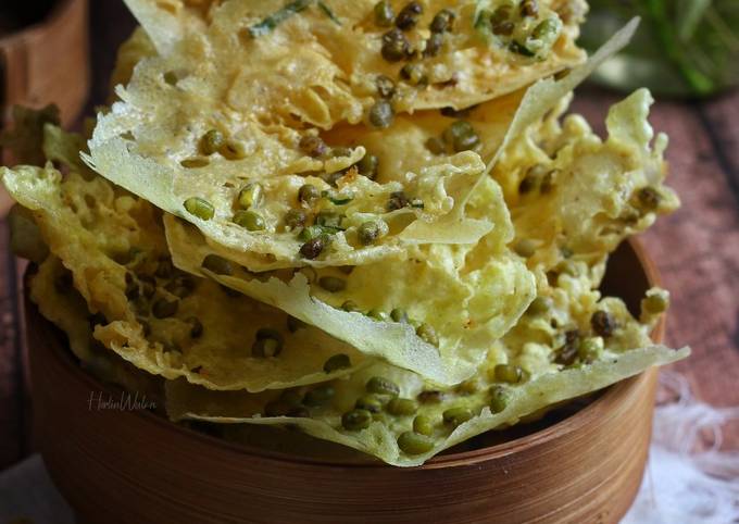 Camilan renyah dari kacang hijau yang gurih. Tahan lama dan mudah ditemukan di toko oleh-oleh.