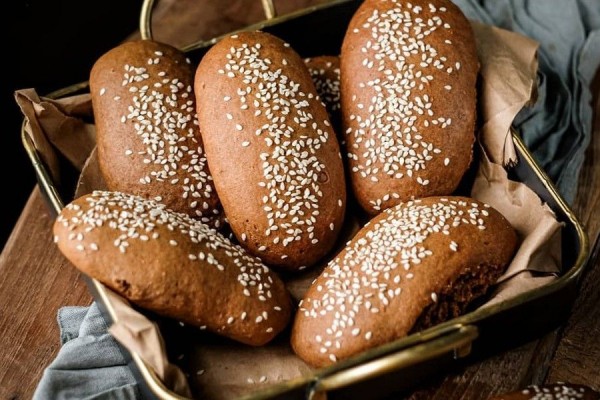 Roti berwarna coklat mirip bantalan rel kereta, memiliki aroma kayu manis yang khas dan tekstur yang padat. Harganya terjangkau.
