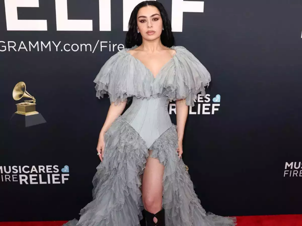 Mengenakan couture dari Jean Paul Gaultier, Charli XCX tampil fierce dengan gaun korset abu-abu berhiaskan ruffles dramatis. Dipadukan dengan knee-high gladiator heels dan berlian dari Bucherer Fine Jewellery, penampilannya benar-benar statement!