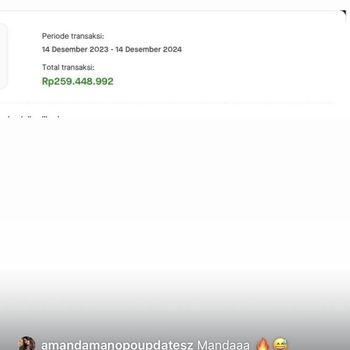 Dilansir pada Minggu (15/12), Amanda mengungkap bahwa pengeluarannya dari 14 Desember 2023 hingga 14 Desember 2024 mencapai angka fantastis sebesar Rp259.448.992. Nominal tersebut bikin netizen terheran-heran, terutama karena ada kenaikan dibandingkan pengeluarannya di tahun 2022.