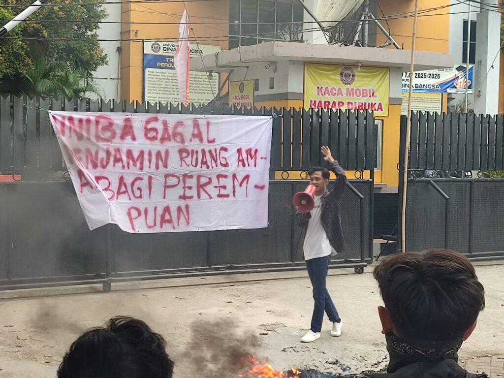 GELUMPAI.ID – Sejumlah mahasiswa Universitas Bina Bangsa (UNIBA) Banten menggelar aksi demonstrasi di Kampus A pada Senin, 25 Agustus 2025.