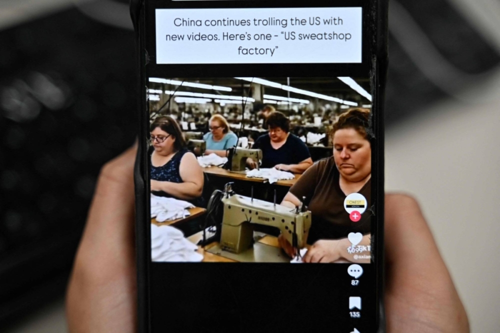 Para “tentara” digital China menggunakan kecerdasan buatan untuk membuat meme dan video yang menggambarkan betapa banyak barang yang dibeli orang Amerika, seperti sepatu dan ponsel, diproduksi dengan tenaga kerja murah China.