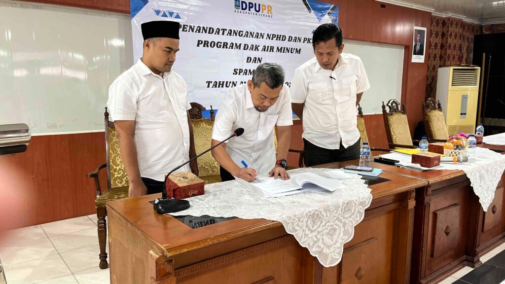 Penandatangan dilakukan oleh Kepala Bidang (Kabid) Sanitasi dan Air Minum pada DPUPR Kabupaten Serang Muhammad Ronny Natadipraja dengan para kepala desa dan perwakilan dari 24 desa.