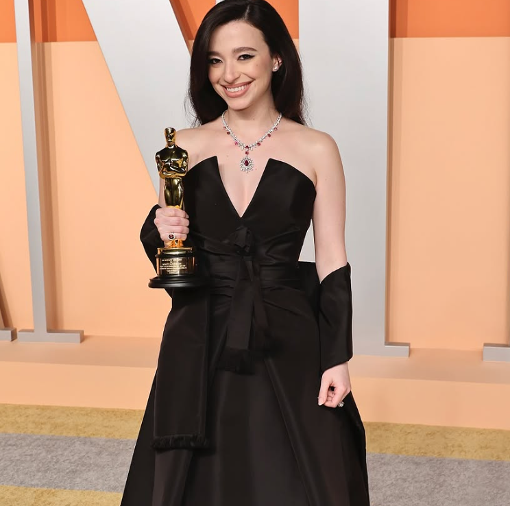 Pemenang Best Actress 2025, Mikey Madison, tampil bak diva era keemasan Hollywood. Mengenakan ball gown hitam Dior yang menonjolkan siluet pinggang dengan potongan V-neckline rendah, Madison berhasil menyuguhkan kesan anggun dan powerful. Aksen pita dan shawl menambah kesan klasik yang tak lekang waktu.