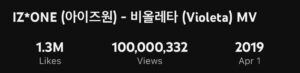 “Violeta” menjadi video musik kelima dari IZ*ONE yang berhasil mencapai 100 juta penayangan, setelah sebelumnya “La Vie en Rose,” “FIESTA,” “Secret Story of the Swan,” dan “Panorama” juga mencapainya.