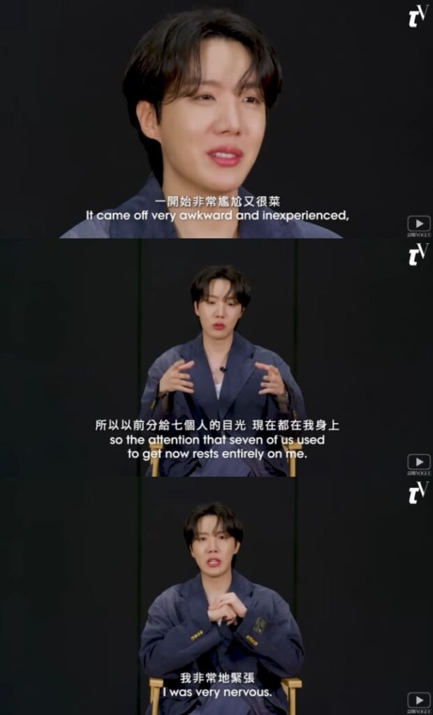 Dalam wawancara terbaru bersama Vogue Taiwan yang dirilis pada 3 Agustus lewat kanal YouTube resmi mereka, J-Hope tampak santai membagikan cerita dari masa audisi hingga refleksi dirinya selama tur solo bertajuk “j-hope Tour ‘HOPE ON THE STAGE’ FINAL” yang digelar pada Juni lalu di Stadion Goyang.