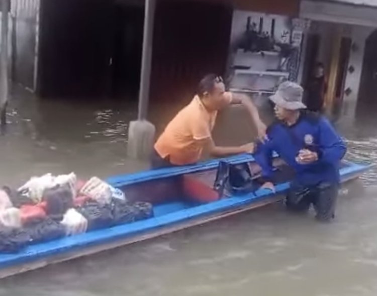 Pada saat itu, Ketua RT yang identitasnya belum disebutkan sedang menyalurkan bantuan untuk warga yang terdampak banjir.