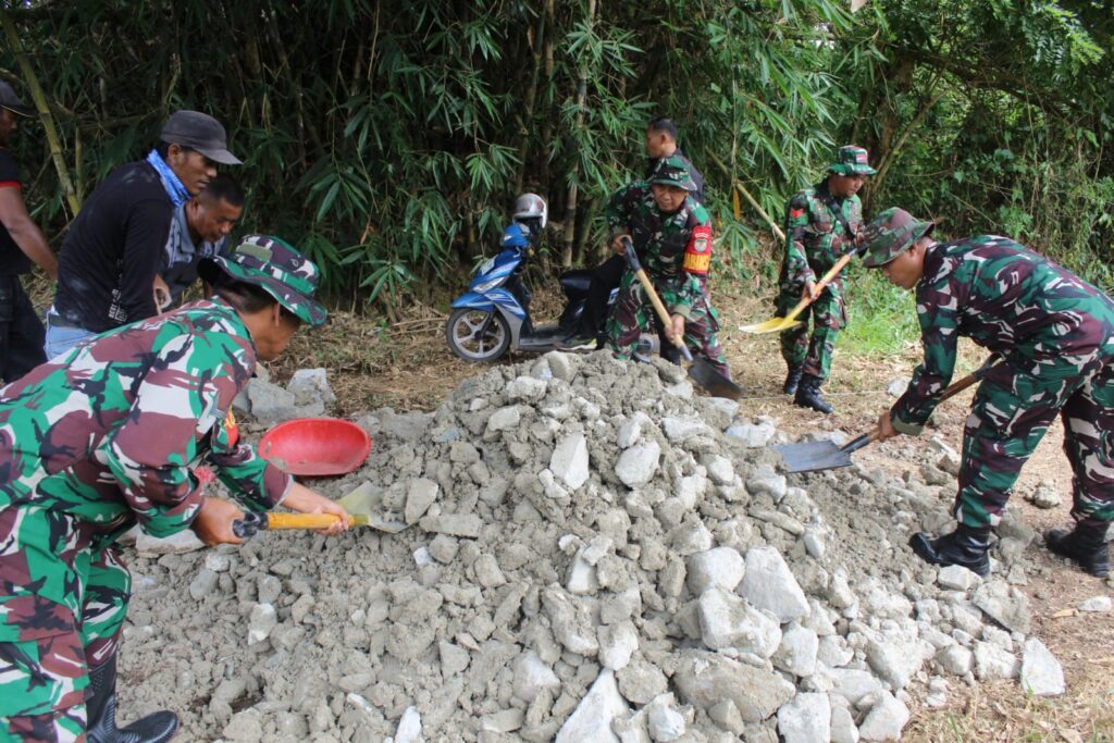 Lanjutnya, selain pembangunan jalan, kegiatan ini juga melibatkan partisipasi aktif masyarakat setempat, yang bahu-membahu bersama personel TNI, dalam proses pengerjaan. Diharapkan, semangat gotong royong ini, semakin mempererat kemanunggalan antara TNI dan rakyat.