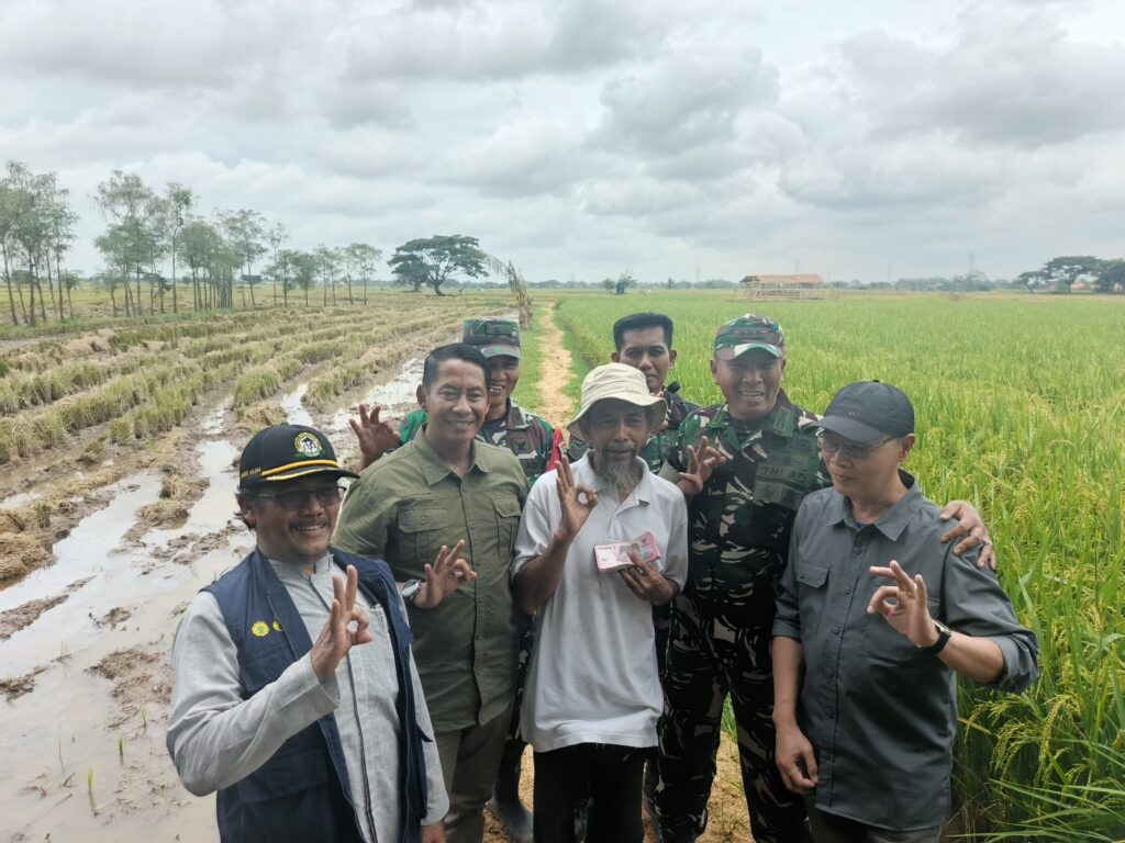 GELUMPAI.ID – Komandan Kodim 0602/Serang, Kolonel Inf Mulyo Junaidi, mendampingi kunjungan Direktur Utama Perum Bulog, Mayor Jenderal TNI Novi Helmi, dalam rangka prosesi panen raya padi sawah dan pembayaran hasil penyerapan gabah petani.