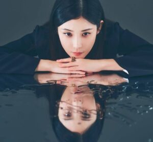 Foto kedua menampilkan Lee Bo-young di depan cermin, seperti sedang berhadapan dengan sisi lain dirinya.