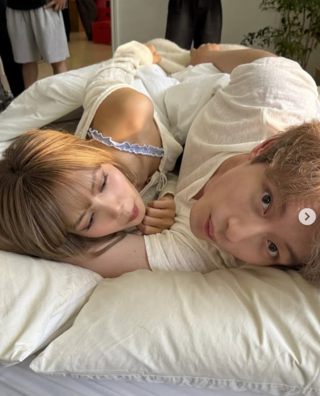 Dalam foto tersebut, Lisa terlihat sedang berbaring di atas ranjang bersama Kentaro.