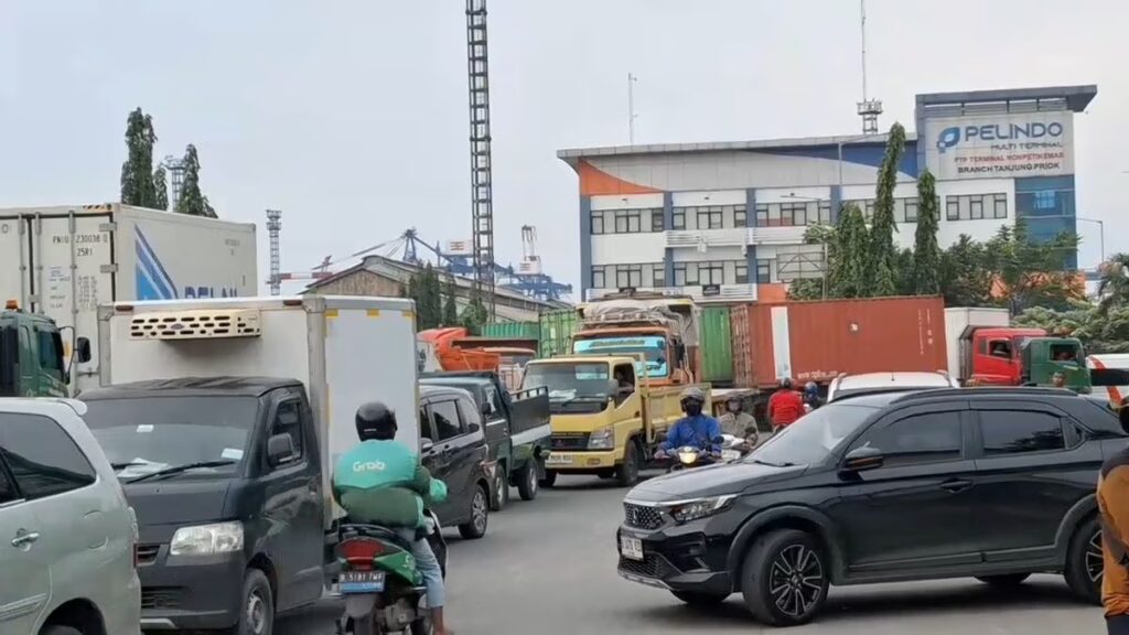 GELUMPAI.ID — Kemacetan parah terjadi di sekitar Pelabuhan Tanjung Priok, Jakarta Utara, pada Kamis (17/4/2025). Kemacetan ini bahkan mengular hingga beberapa kilometer, dengan titik tersibuk terjadi di terminal New Priok Container Terminal 1 (NPCT 1).