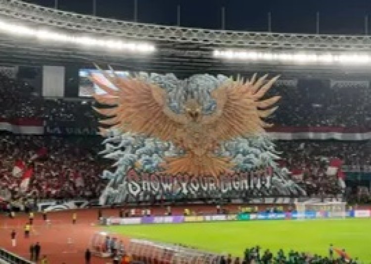 GELUMPAI.ID – Suasana pertandingan kualifikasi Piala Dunia 2026 Zona Asia antara Timnas Indonesia dan Bahrain semakin meriah dengan koreografi spektakuler yang dibentangkan di Stadion Gelora Bung Karno (GBK).