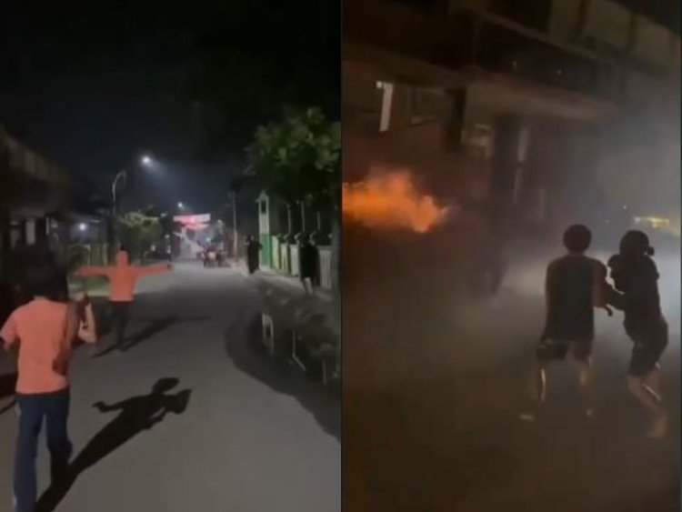 Dalam sebuah video yang beredar, terlihat para pemuda saling serang tidak hanya dengan sarung yang digulung dan diikat seperti senjata, tetapi juga dengan melemparkan petasan ke arah lawan.