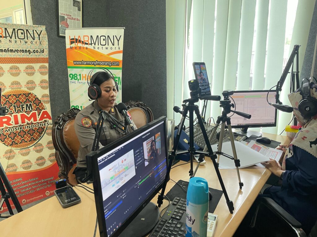 Dalam Talkshow ini yang menjadi Narasumber adalah Paursubbagdiapers Bagdalpers Biro SDM Polda Banten Iptu Transito Yati yang dipandu oleh penyiar Harmony Fm Nesya Aulia.