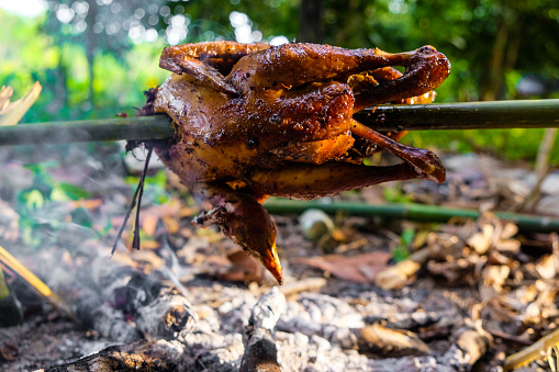 Setelah ayam matang, langkah selanjutnya adalah memanggang ayam. Siapkan bara api atau pemanggang, dan panggang ayam di atasnya.
