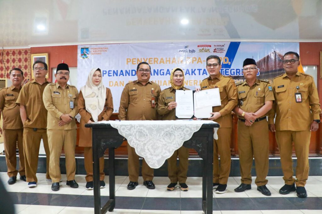 GELUMPAI.ID – Bupati Serang Ratu Tatu Chasanah menyerahkan Dokumen Pelaksanaan Anggaran (DPA) Organisasi Perangkat Daerah (OPD) dan kecamatan Tahun 2025. Penyerahan sebagai tanda dimulainya anggaran Tahun 2025, untuk dilaksanakannya program-program yang sudah di canangkan.